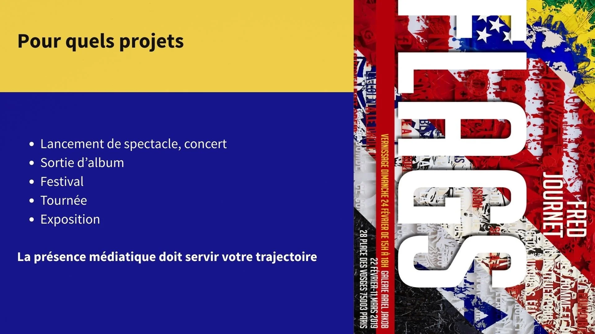 TF1 • France Télévision • M6 • BFM • Cnews • LCI • France Info • Europe 1 • RTL • RMC • France Inter • Télématin • Bonjour • Basique • Culture Box France Inter • Télérama • Le Parisien • Ouest France • La Dépêche • La Provence • Paris-Match • Les Inrockuptibles • La Gazette Drouot • Beaux Arts Magazine • L’Œil • Transfuge • Artension • Mouvement • Diapason • Polka Magazine etc…